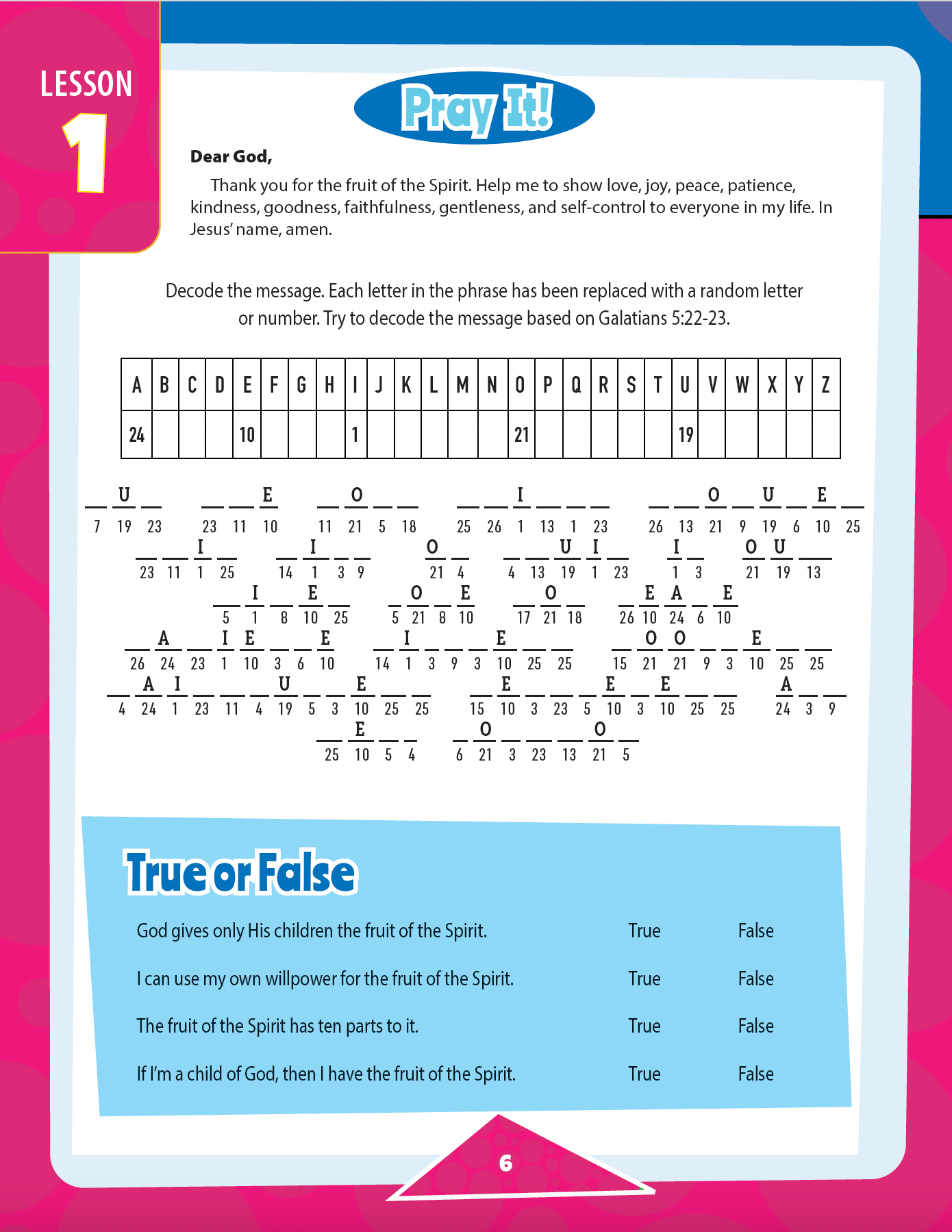 The Growing with Jesus Activity Book is included for classroom or rotational setting and to be used in conjunction with the Teacher's Guide. All lessons follow the same pattern for teaching students.