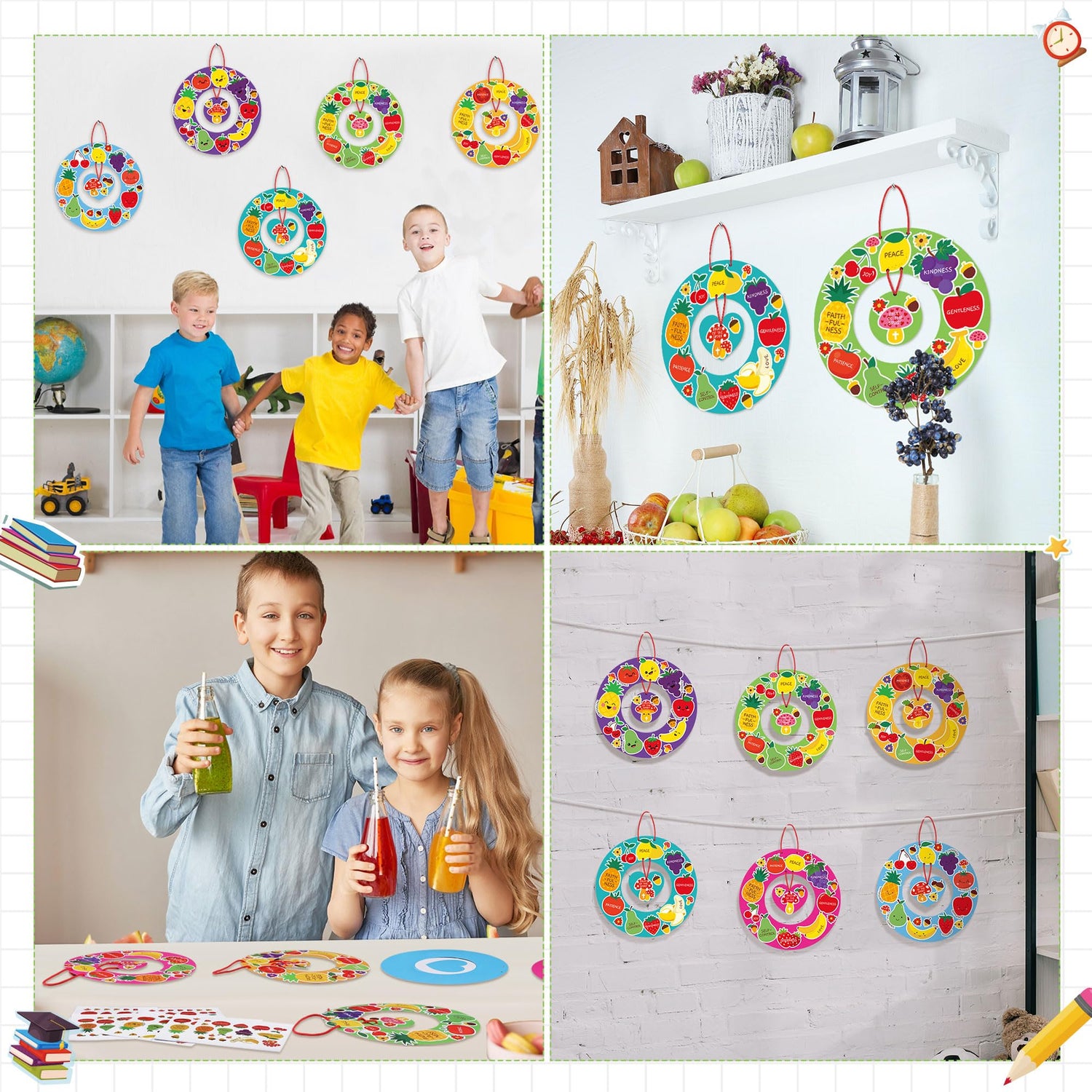 - Easy to Use: each fruit handmade wreath kit comes with stickers, so everyone can easily stick on; The wreath craft kit will attract students' attention with cute fruit elements, they can be freely mixed and matched to create various styles, ideal for Sunday school or home